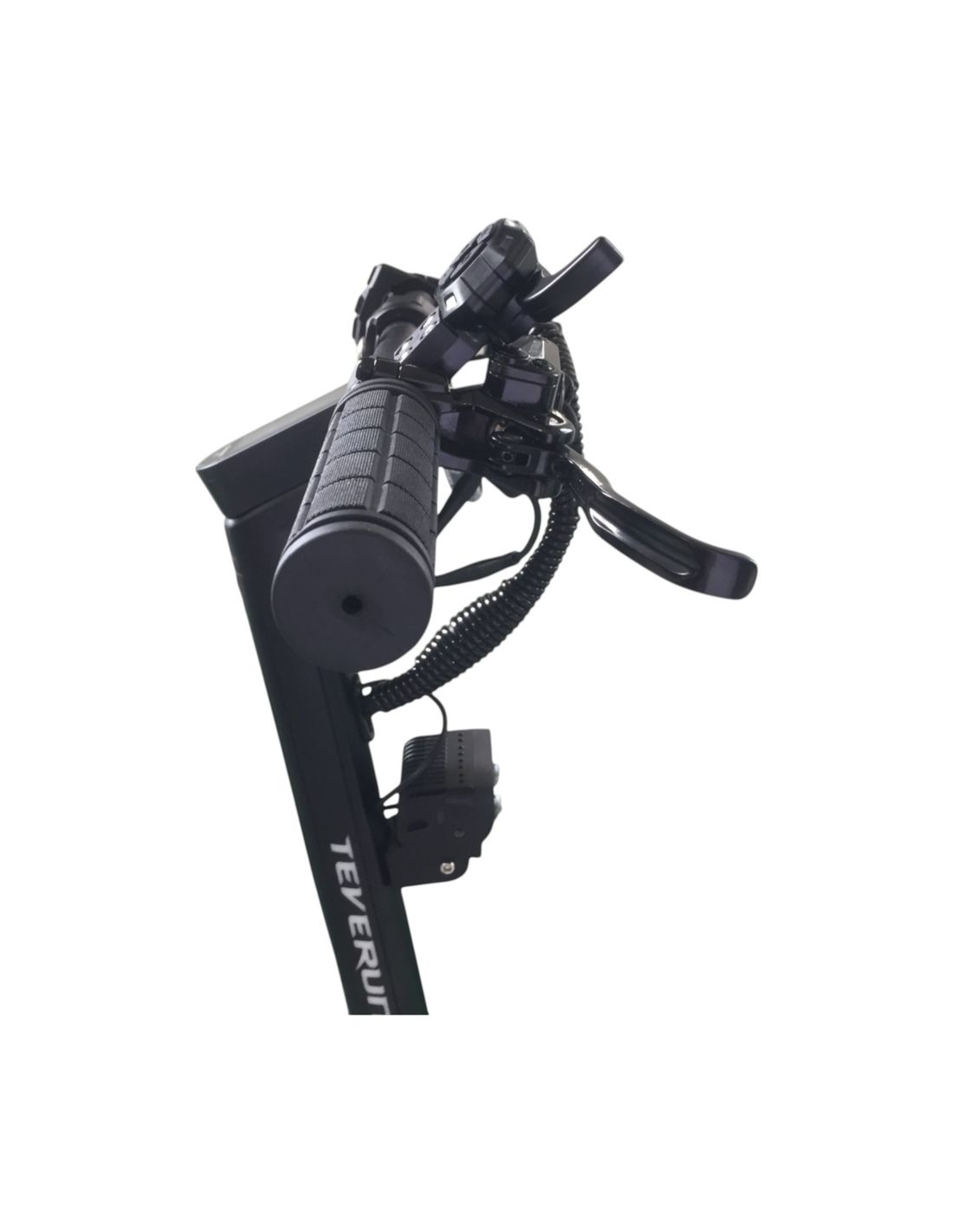 Au guidon, vous accédez rapidement aux clignotants, au phare, au klaxon et à l’accélérateur. L’écran LCD central affiche vitesse, mode, batterie et kilométrage. L’application Teverun permet le verrouillage, la localisation et des réglages avancés, en complément du verrouillage NFC.